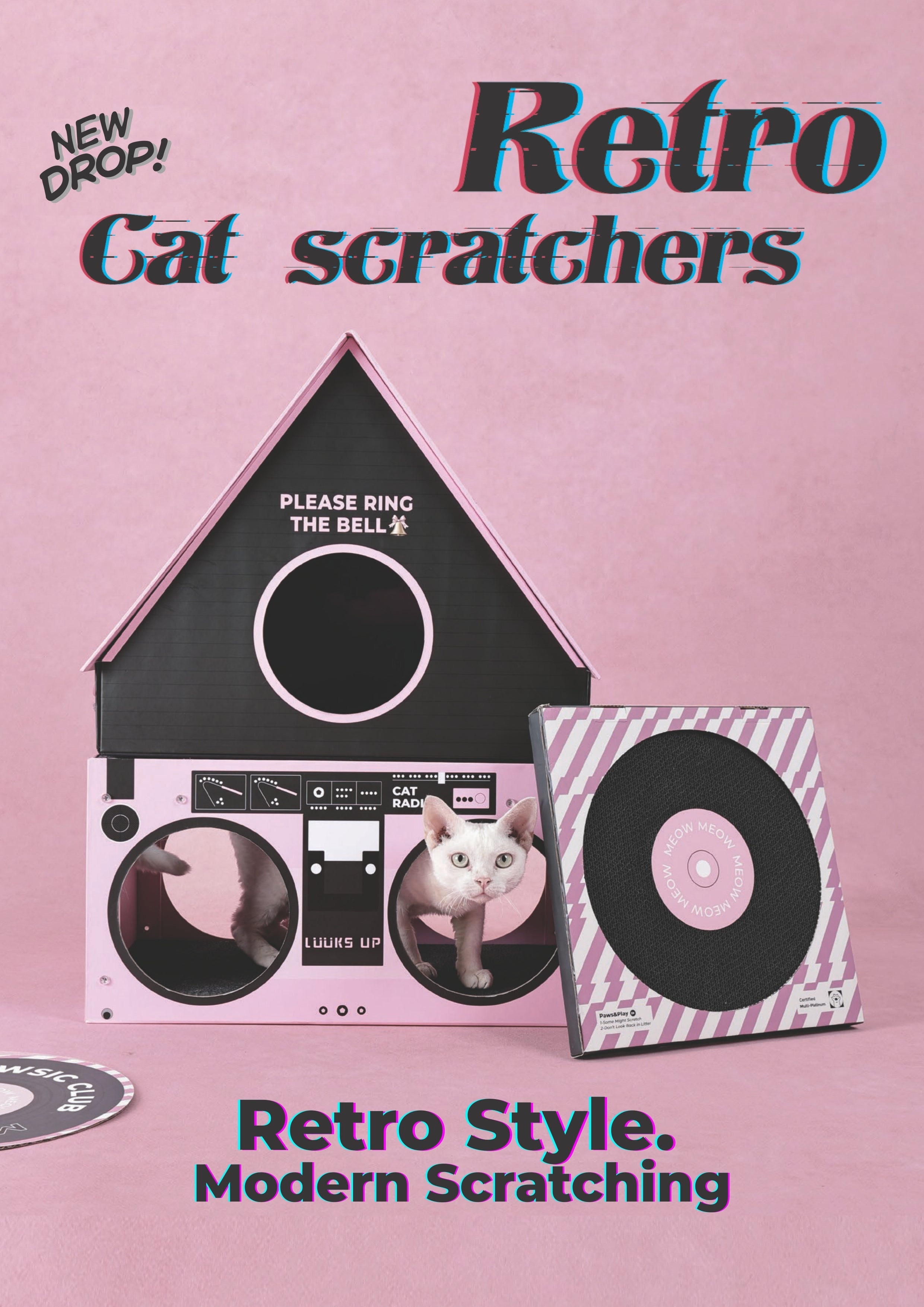 A playful nod to vintage design, the Retro Cat Scratcher Collection blends iconic style with everyday feline comfort.