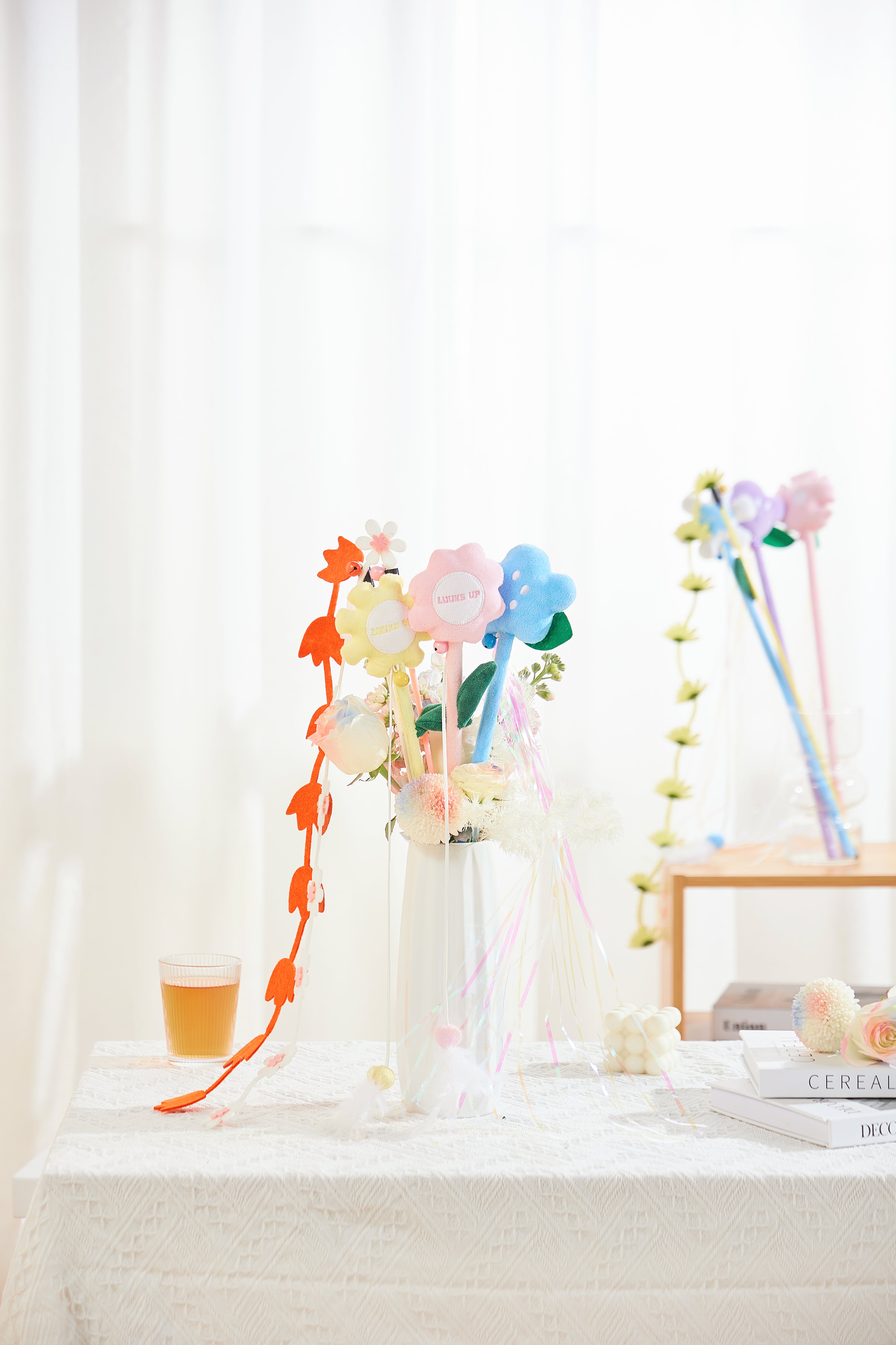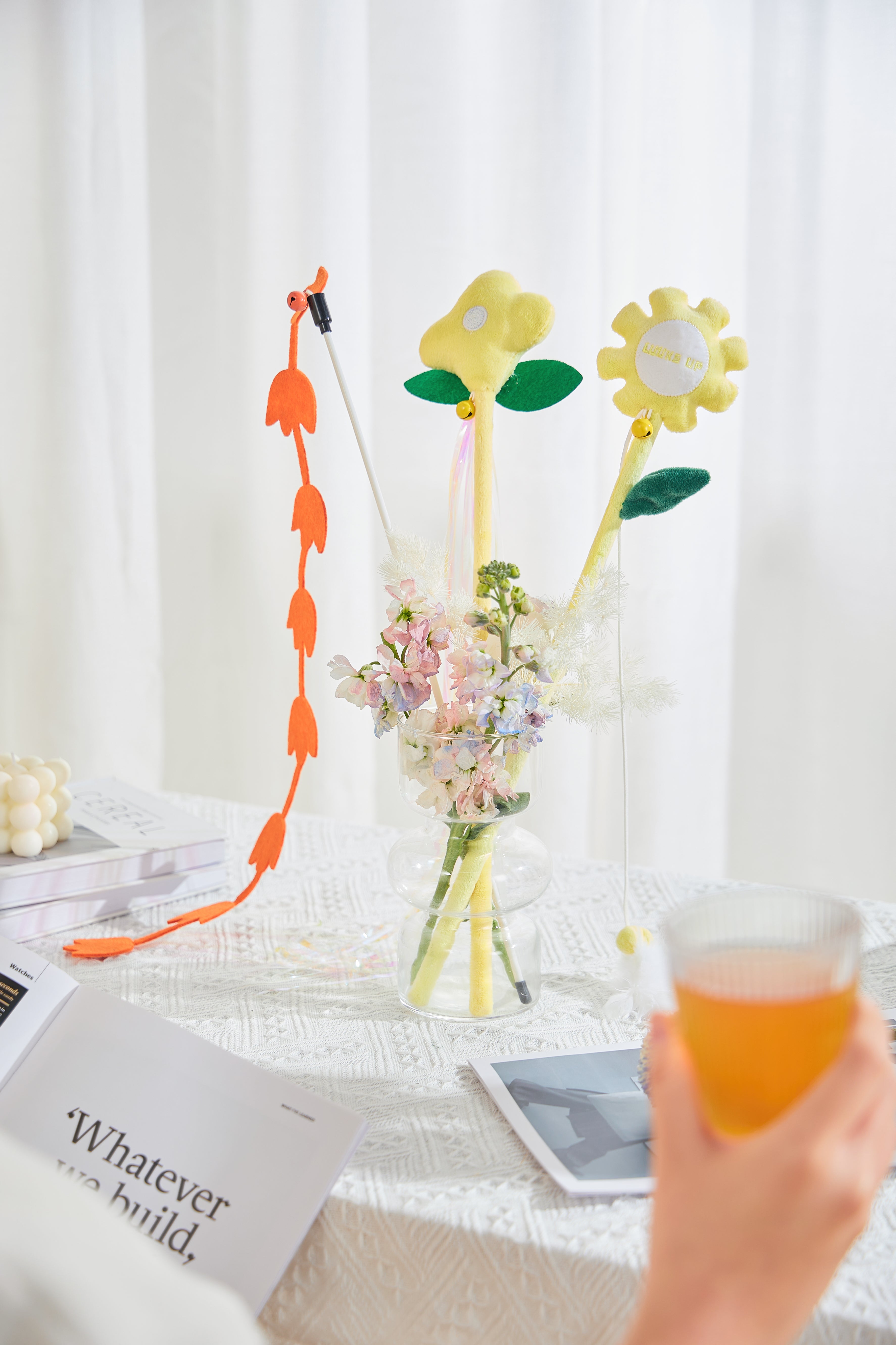 The LUUKS-UP Cat Teaser. A Bouquet of Flowers is a delightful 3-piece set designed to spark your cat’s playful instincts. Each flower-shaped teaser features a catnip bell, encouraging chasing, pouncing, and batting for endless entertainment. Perfect for interactive play, this charming set keeps your cat active, engaged, and mentally stimulated while providing fun bonding moments.