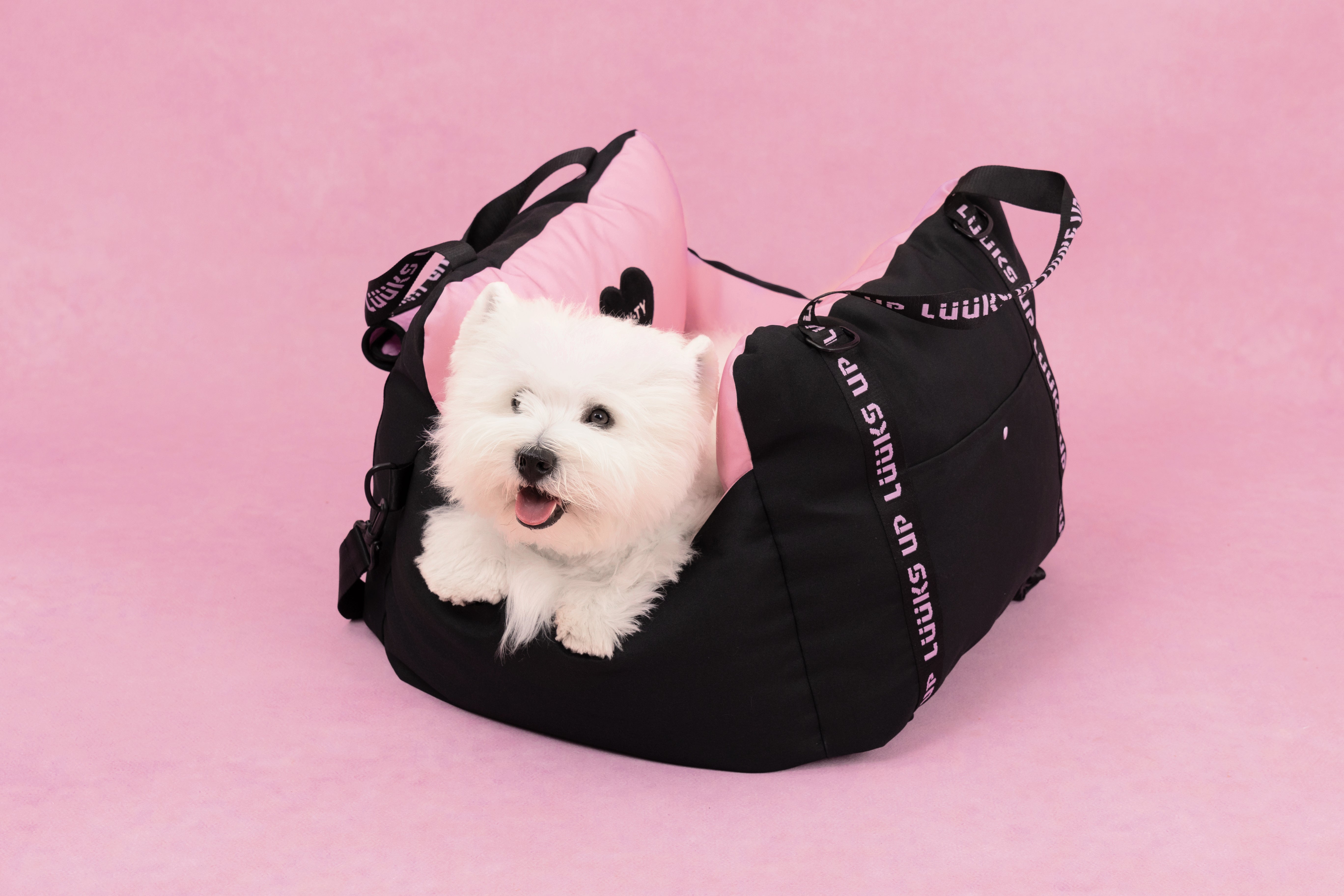 The stylish black and pink design also looks great in any car, and the handy side pocket is perfect for keeping small essentials close, like treats, wipes, or a leash.