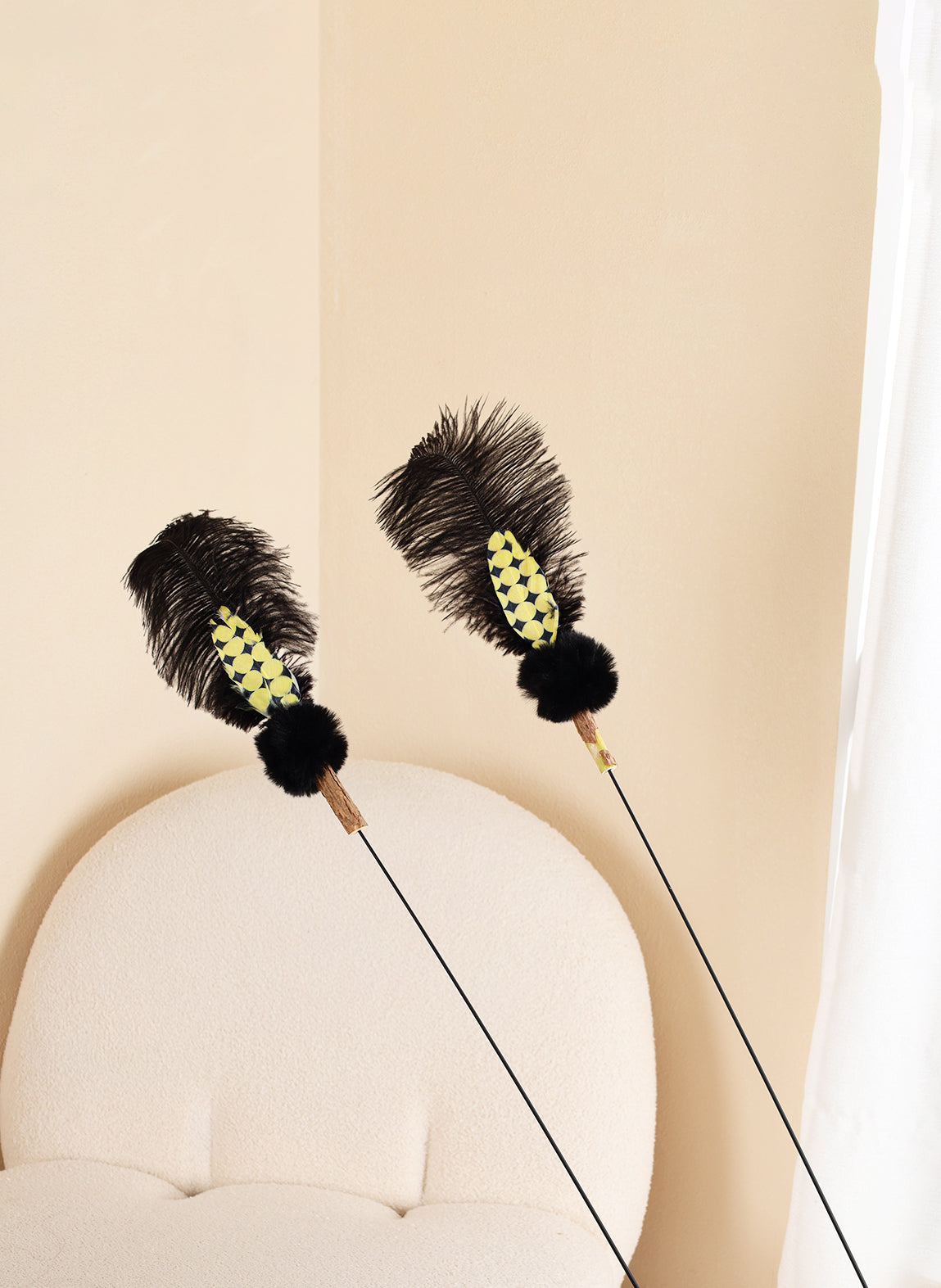 Plume Tail Teaser - Black Yellow Dots